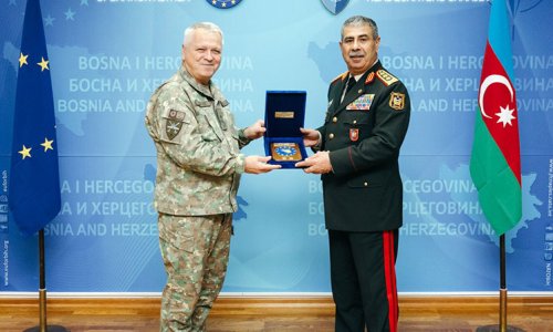 Bildirilib ki, Butmir hərbi bazasında keçirilən rəsmi qarşılanma mərasimindən sonra müdafiə naziri Avropa İttifaqının Bosniya və Hersoqovinadakı Qüvvələri komandanı general-mayor Florin-Marian Barbu ilə görüşüb.