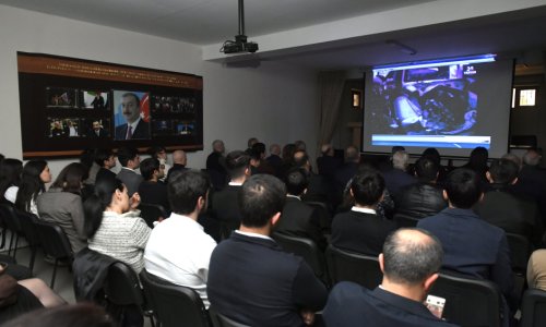 Sonra Ulu Öndər Heydər Əliyevin və Azərbaycanın müstəqilliyi uğrunda canlarından keçmiş qəhrəman şəhidlərin xatirəsi bir dəqiqəlik sükutla yad edilib, Dövlət Himni səsləndirilib.